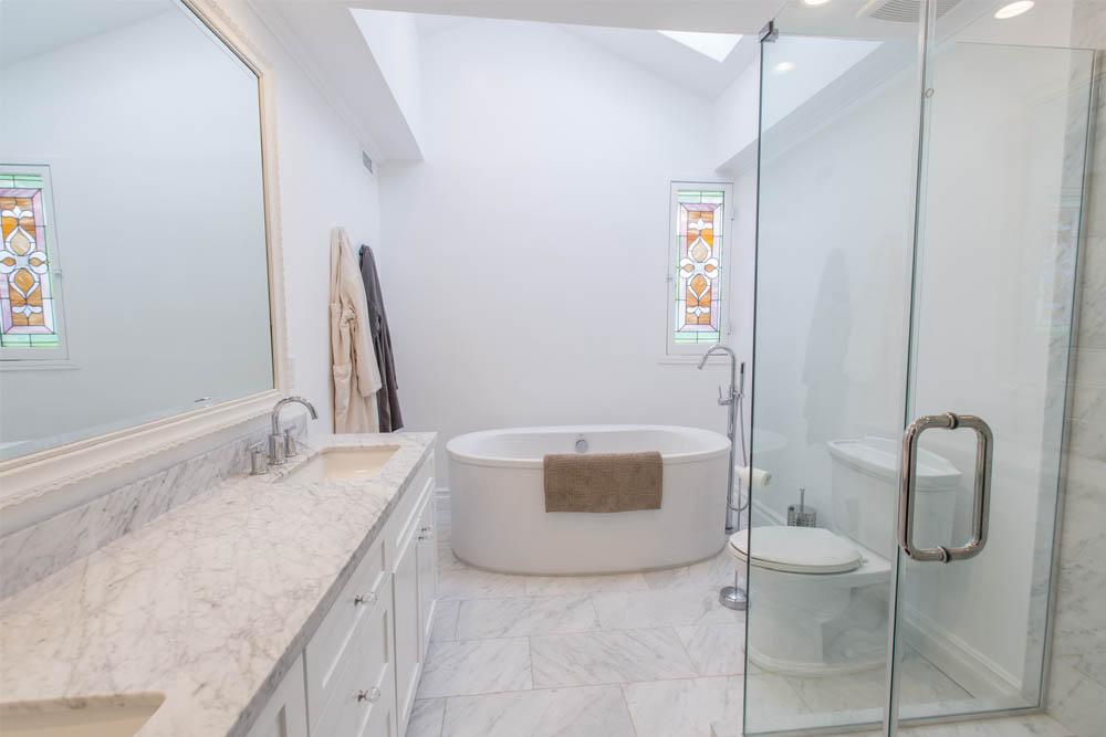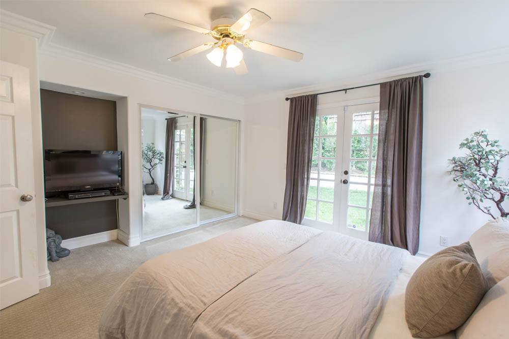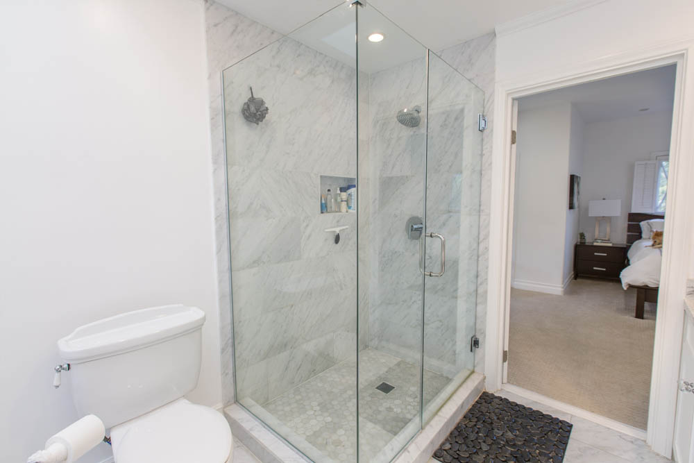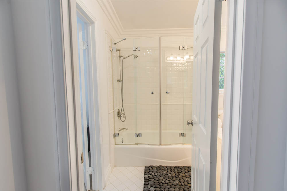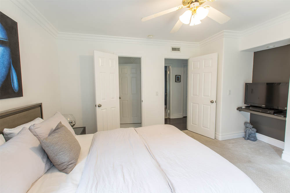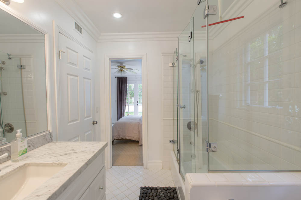 The master features a gas fireplace and a walk-in closet. The master bath was renovated to look like a Four Seasons spa! Carrara shower, gleaming white cabinet with dual sinks and Carrara slab on top. A separate soak-in tub really sets this bathroom apart. There are also two balconies off of the master, perfect for relaxing and enjoying the views – one on each side of the home.